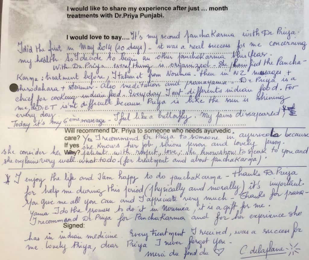 At the Ultimate Ayurveda health center in Auckland, our senior practitioner Dr. Priya Punjabi (BAMS) is motivated to help you with your health goals. It starts with formally introducing you to the natural principles of Ayurveda; an internationally accepted ancient science, dating back to the time of the Indus Valley civilization, about 5,000 BCE.